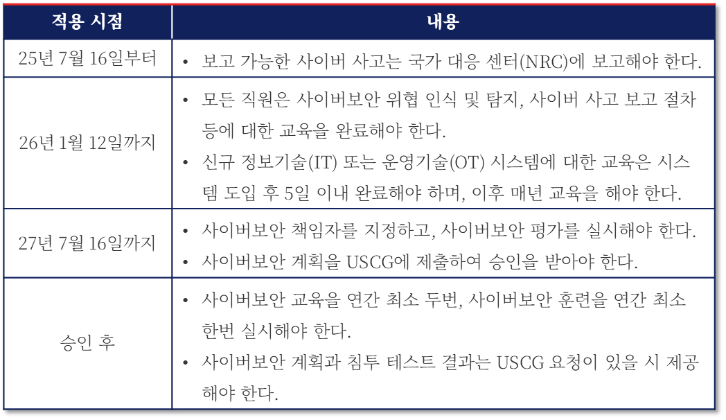 출처:USCG, Cyber Regulations Fact Sheet for Public Release