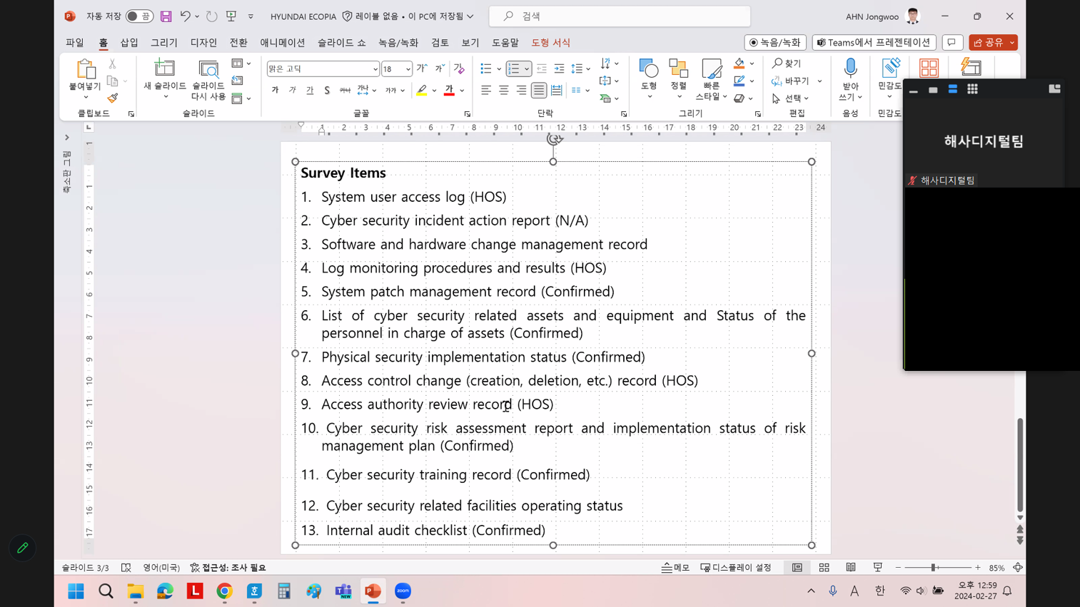 <선급 사이버보안 원격검사 화면>