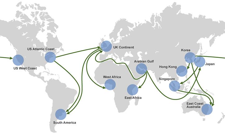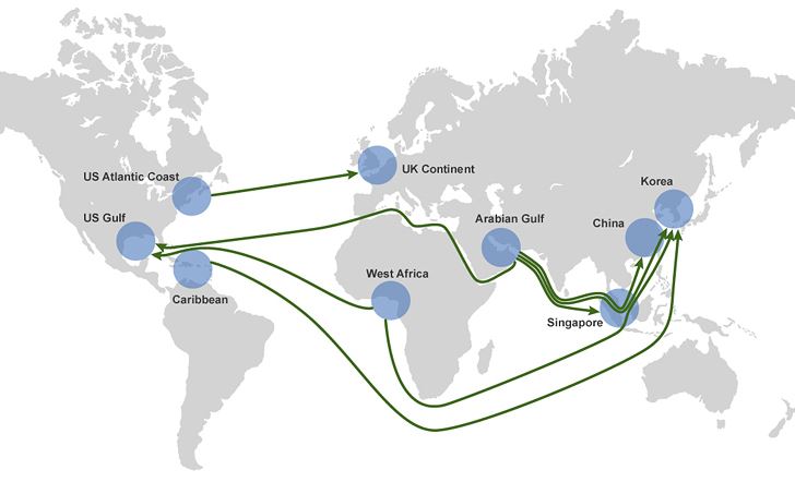 장기 운송계약을 바탕으로 중동/서아프리카/카리브해에서 극동/미국/유럽으로 원유를 수송하며